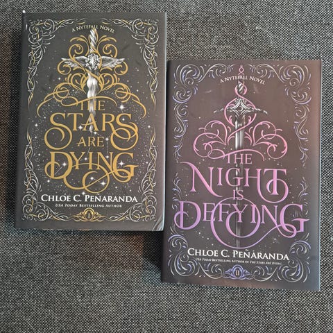 The stars are dying hardback, special edition med sprayed edges. Selve boken inni coveret er minst like fint. Boken er ulest og har kun stått i hyllen.