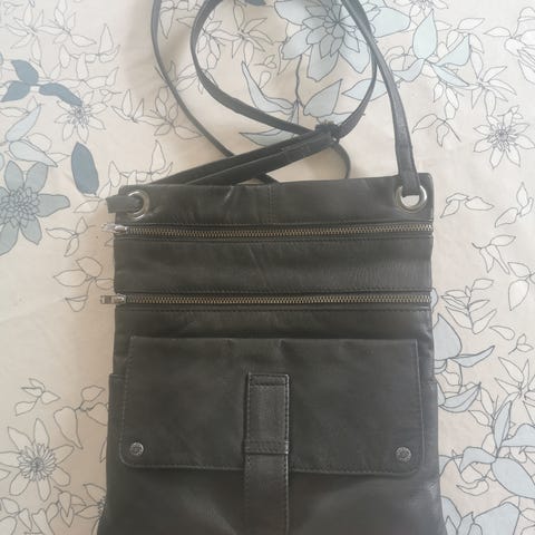 Pent brukt forseggjort veske med skinnfrynser og blonder.