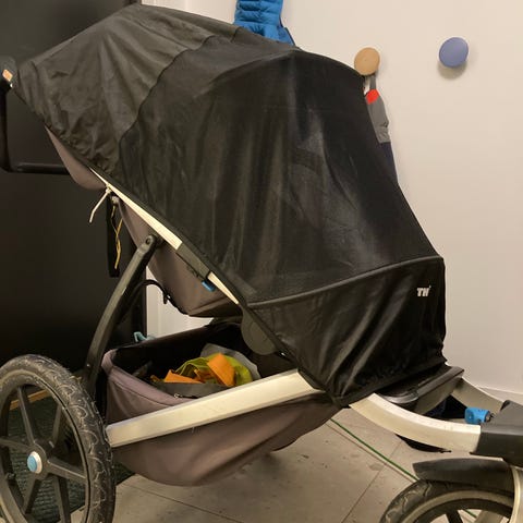 Selger med vognadapter, myggnett og regntrekk.