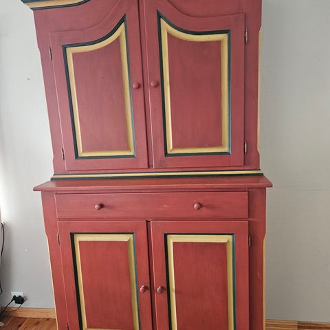 Pent, gammelt skap. Ble malt blått og turkis for fem år siden. (Fargene på bilde 1 og 7 er korrekte.)