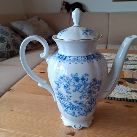 Koselig Blå-hvitt koppesett med 4 stykker blomster og prikker Greengate