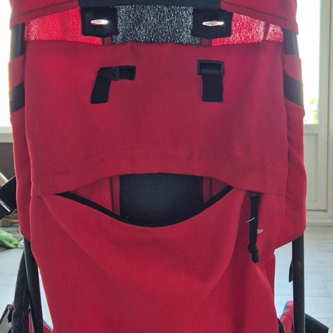 Bæremeisen er av merket Bergans. Har lomme på baksiden til evt småting man ønsker å ta med på tur.