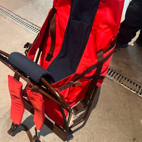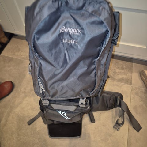 Bæremeisen er av merket Bergans. Har lomme på baksiden til evt småting man ønsker å ta med på tur.
