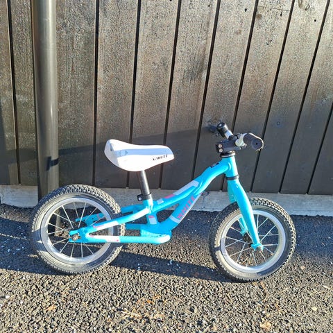 Alltid oppbevart inne, og har gitt ein enkel overgang til trøsykkel for to barn!