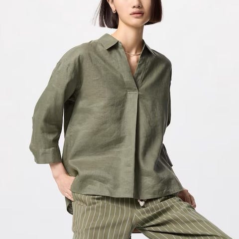 Linskjorte fra Ines de la Fressange sin kolleksjon hos Uniqlo. Klassisk tidløs stil, ingen flekker eller hull. 100% lin, str M