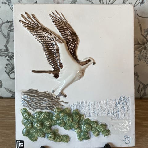 Flott keramikk relieff bilde av Fiskeørn, Fiskegjuse