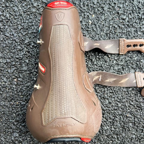CARBON AIR HEEL overtrampbeskytter med borrelås er utviklet for å beskytte hester i enhver gren. Den er 100% laget i Italia, og designet til å beskytte koden og hovballene mot tramp eller gnag. Carbon Air Heel gir god beskyttelse, og holder seg stabilt på plass ettersom den er fleksibel og tilpasser seg ulike hælfasonger og koder. En myk ring av kunstpels er festet rundt den øvre kanten for å optimalisere komforten. Gel-Tech-teknologien er støtabsorberende og gir en komfortabel polstring, disse overtrampsbeskytterne vil også puste takket være den perforerte neoprenen med 6 luftehull. Karbonfiberelementer ligger under skallet for å thermisk isolere leddene fra varmen som blir generert av ytre friksjoner, samtidig som det øker beskyttelsen mot mekaniske støt. De elastiske stroppene med borrelås gir et trygt feste. Størrelsen og den ergonomiske utformingen har blitt utviklet ved å kopiere beinstrukturen nøyaktig, noe som garanterer en perfekt plassering slik at man unngår alle former for stress.