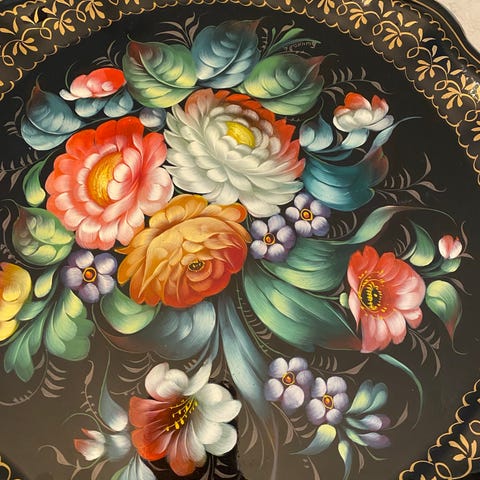 Stort vintage keramikkfat, ungarsk folke tradisjon 70-tallet