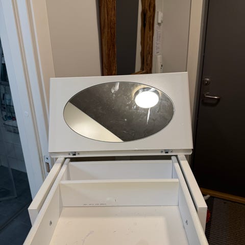 Selger 2 "skittentøyskap" med uttrekksskuff til 350kr pr stk, evnt 600kr for begge to. Hele og pene. Vi har brukt de til skittentøy ved å ha en litt større kasse inni.