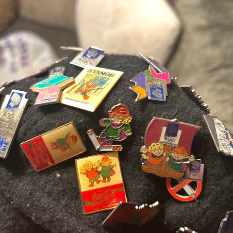 OL i Lillehammer 1994 pin i sølv 925. Forestiller en som danser på skøyter. Mål: 3,8 cm.