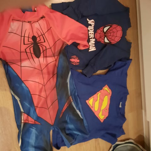En Spider-Man shorts egnet til bading str 116/6 år