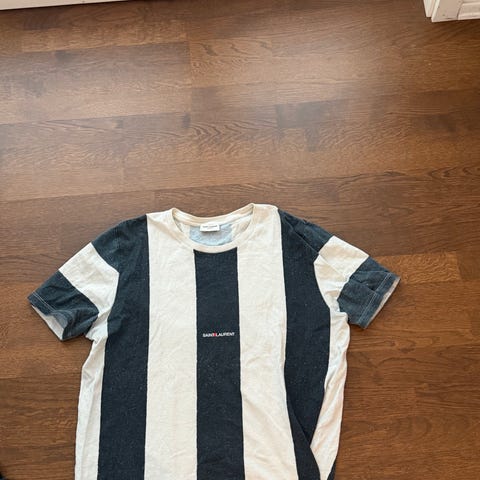 Saint Laurent T-skjorte i størrelse M for herre. Fargen er lilla, og materialet er behagelig og lett. Denne T-skjorten passer godt til hverdagsbruk eller som en del av et avslappet antrekk.