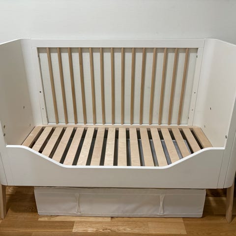 Selger en Lukas sprinkelseng fra Troll. Den ser slik ut og kan reguleres i to høyder: