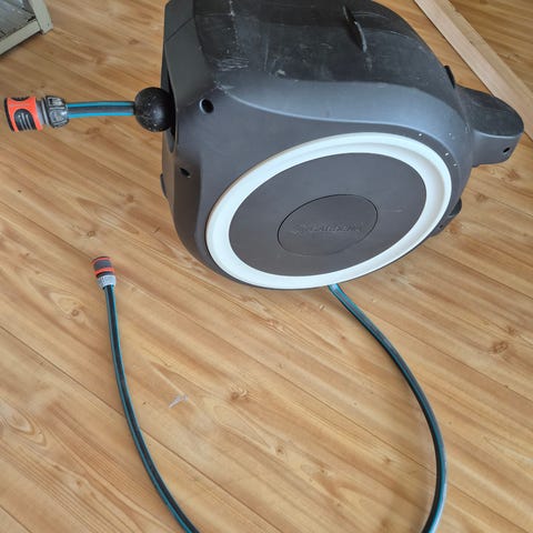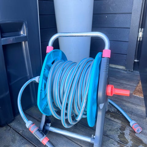 Slangetrommel med 20 m vannslange. Ny pris 599,- Hentes på Lillehammer