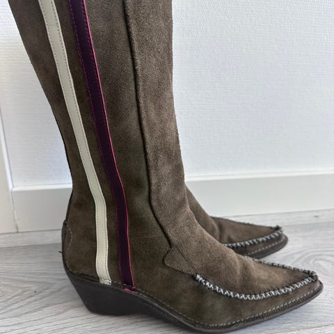 Unike støveletter i semsket skinn fra Camper. Flate og gode å gå i. Mønstret for. Str 38. Funker for 37. Kuleste rødfargen.