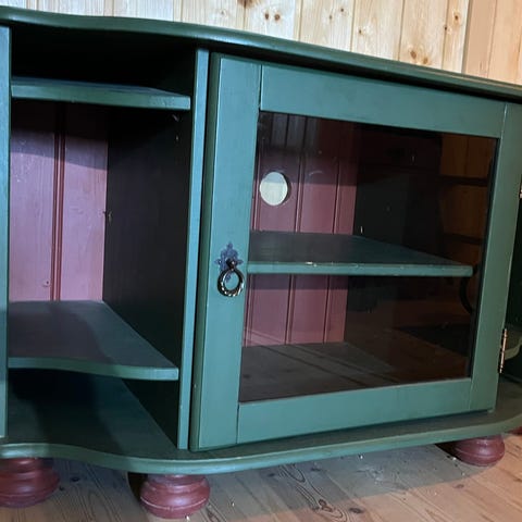 Gammel TV-benk som er pusset opp og malt.