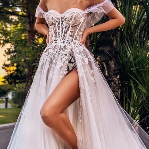 Nydelig og unik brudekjole kjøpt fra Fuhrmanns (https://fuhrmanns.dk/) i København i november 2023 (brukt i bryllup maks 5 timer juni 2024). Kjolen er nyrenset fra Røa Renseri og har ingen bruksmerker. Tung og fint stoff som faller veldig fint. Føler seg ikke "gjennomsiktig" eller for trang. Går fint ann å bevege seg og danse i kjolen. Den er så fin med de duse armene og firkantet utrigning som gir en ekstremt fin figur! Fargen er hvit, men med litt eggeskall.