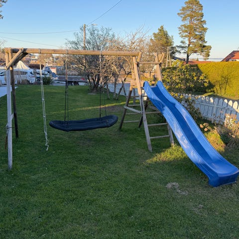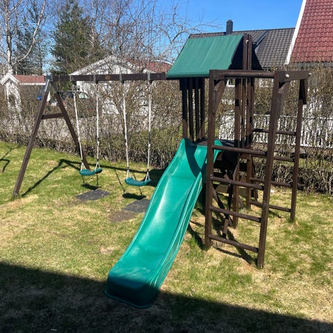 I tillegg kommer duk til bunn og netting for å dekke over en sandkasse som kan lages under sklietårnet.