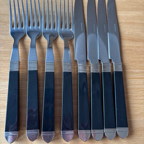 8 kniver, 11 gafler. Lengde kniv 18,5 cm