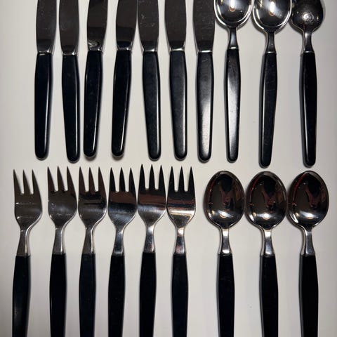 Venus bestikk plast/rustfritt fra 1950/60 tallet. Produsent Asni, Danmark.