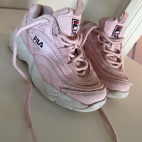 Veldig kule rosa, glitrende Filasko selges da de ble fort for små her.