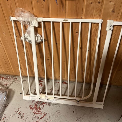 Dreambaby sikkerhetsgrind . Litt varmeskader på håndtak, men fungerer som den skal. Stort sett stått lagret ubrukt.
