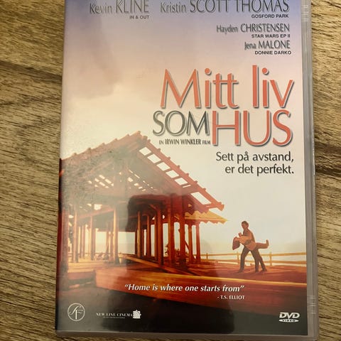 DVD-utgave av filmen 'Mitt Liv Som Hus' med norsk tekst. Filmen er regissert av Irwin Winkler og har Kevin Kline i hovedrollen. Denne utgaven er egnet for de som foretrekker filmer med norsk oversettelse.