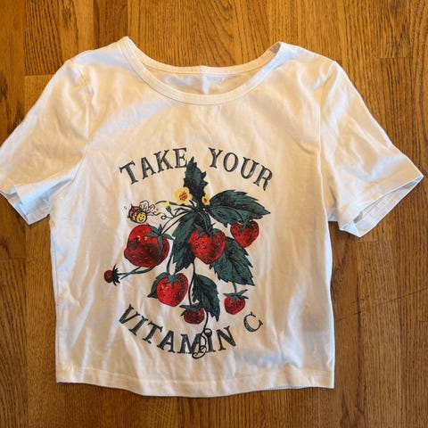 Kul cropped t-skjorte. Hvit med svarte striper. Brukt 1 gang.