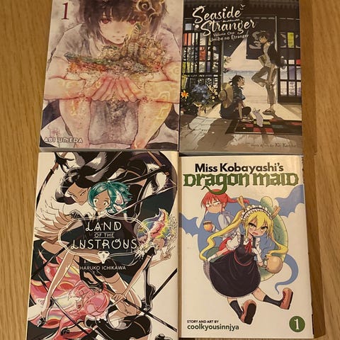 Selger en stor og variert samling manga (og en tegneserie) til gode priser! Bøkene er pent brukt og i god stand, noen tilnærmet som nye. Perfekt for samlere eller deg som vil starte en ny serie!