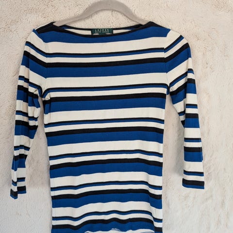 Hvit og blå stripete genser fra Tommy Hilfiger, strl S. Pent brukt.