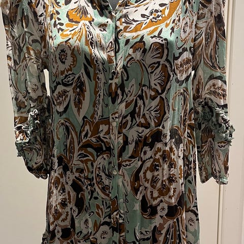 Pent brukt tunika/kort kjole fra MISS JUNE. Passer best ca 36-40. Faller veldig fint på kroppen. Fine bruntoner. Noen små paljetter.