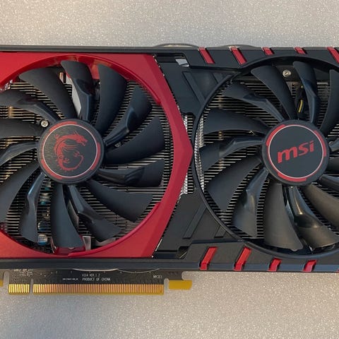 Selger et fint GTX 970 fra MSI. Nylig testet og byttet thermal paste så det holder seg kjølig under bruk. Kan sendes for 69kr med PostNord eller Fiks ferdig