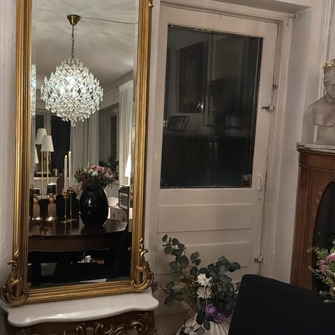 Vakkert stort fasettslipt gullspeil