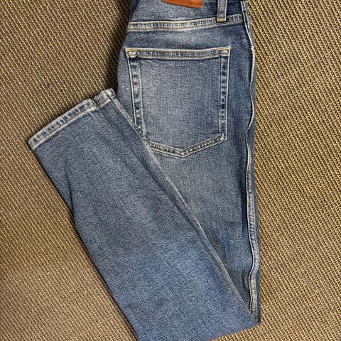 Kjempefine, stilige lyse jeans fra Stylein, str. 29. Modellen heter Kim, har rette bein, mellomhøy midje og knappelukking. 100 % bomull (ingen stretch), offwhite farge. Buksa er brukt én gang og selges fordi den dessverre er for snau. Skikkelig kul bukse! Kostet 2.500,- ny.