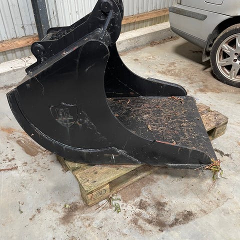 Brukt gravemaskin skuffe selges , , bredde er 59 cm , akselavstand i innfesting er 13 cm , hulldiameter er 40 mm kom gjerne med bud