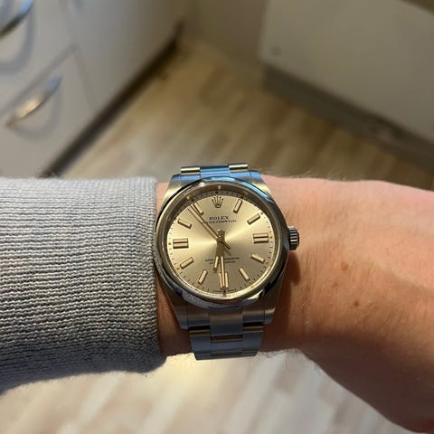 Ønsker å kjøpe en OP med ref nr 114300. Dark Rhodium skiven, se bilde. Må være pent brukt og dokumentert.