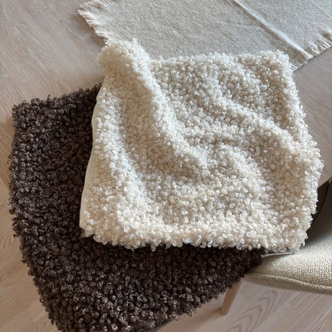 2 stk. Gull-beige 50x50cm pynteputetrekk i fløyel fra HM Home.
