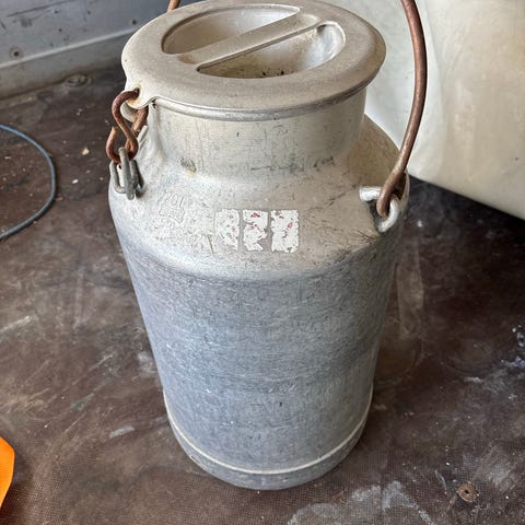 Gammelt dekorativt melkespann m/lokk