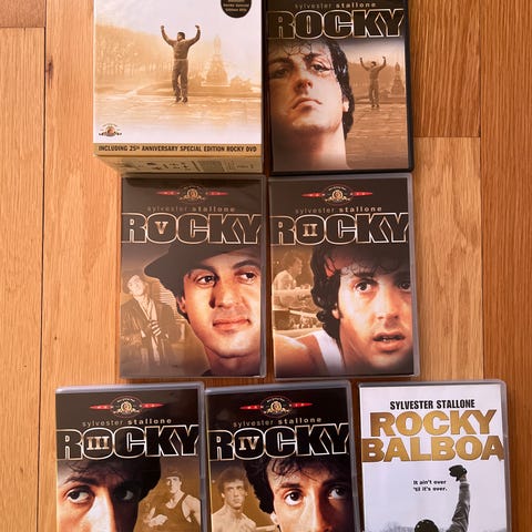 Samlingen er komplett med alle 6 filmene: Rocky, Rocky II, Rocky III, Rocky IV, Rocky V og Rocky Balboa.