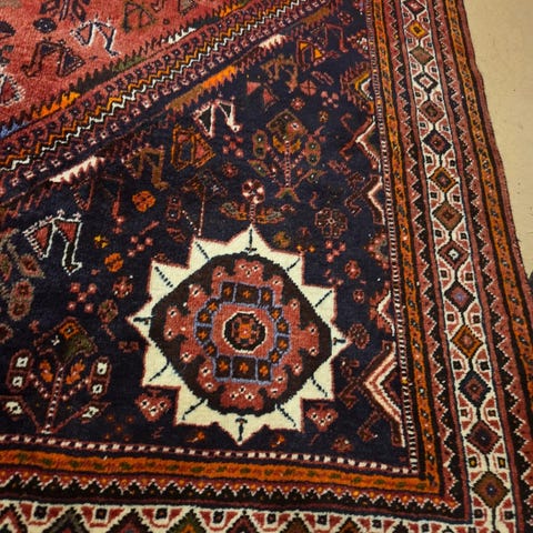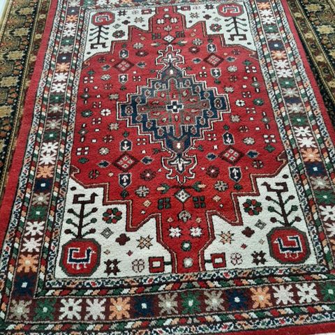 Flott orientalsk håndknyttet Beluch-teppe fra Afghanistan. Svært god kvalitet i ull, med fine dype farger. Kjøpt fra Pars Tepper på Majorstuen. Selges etter at vi har flyttet, og ikke har plass til det lenger.
