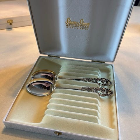 6 stk teskjeer med tvistet skaft og dekorative ender
