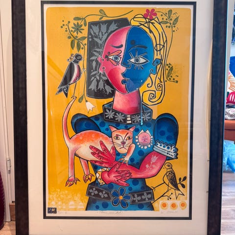 Magisk Litografi fra «Munch - adapsjoner» Hun har vært med på flere performance-prosjekter, blant annet med Lou Reed . Jobber også sammen Ari-Ben. Stort navn i Norge og utlandet. Bilet rammet og brukt Art Glass. I seg selv koster 3000-4000kr. Herlig mulighet ☺️