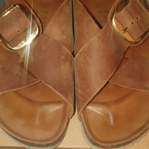 Damesandal m / borrelås- lukking. Str 37. Semsket . Kr. 500.-( 1200 .- )