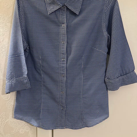 Bluse fra van Laack lyseblå smårutet selges kr. 300,-. Aldri brukt.