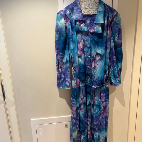 Fet vintagekjole fra Kiki of Norway - freshe farger og sykt pent A-formet snitt når den er på (kommer ikke frem på bildene dessverre). Merket str 44, vil si det i dag er ca L.