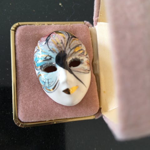 Liten Mardi Gras ansikts maske nål/brosje i porselen