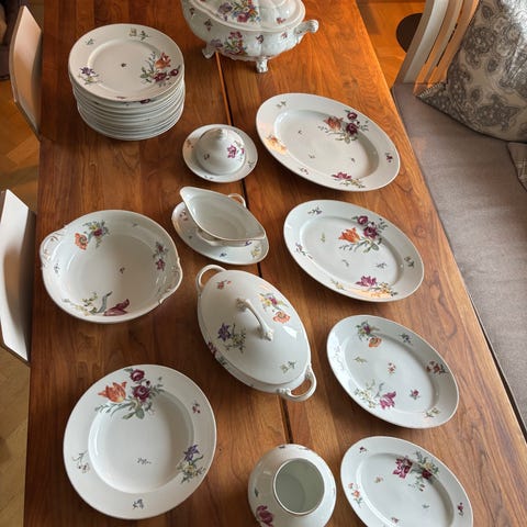 Vakre, store middagtallerkner til salgs - fremstår som ubrukte og helt uten skader eller riper. Fantastisk klassisk design og utsøkt kvalitet. Selges samlet (12 stk) for kr 13200,- (1100,- pr stk).