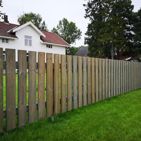 Selger en start på ett gjerde til platting på ca. 2 x 6 meter. Det følger med 7 stk stolpesko og høyden på gjerdestolpene er 1.20.