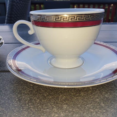 4 stk Philippe deshoulieres Scala kaffekopper med skåler. Rød farge. Lite brukt og fremstår som nye.