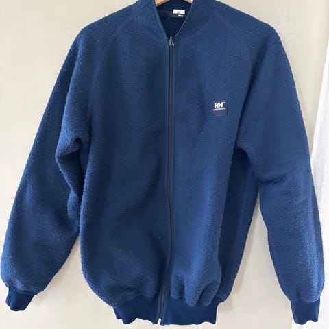 Original blue 'Smelly Helly' fibre pile jakke. Størrelse M